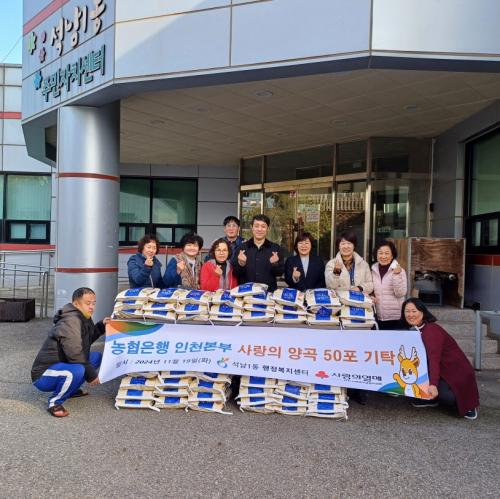 [½Åµ¿¾Æ¹æ¼Û ÀÎõ= À±¹Î½Ä±âÀÚ] NH³óÇùÀºÇà ÀÎõº»ºÎ(´ëÇ¥ ±è¼±´Þ)´Â Áö³­ 19ÀÏ ¼®³²1µ¿ ÇàÁ¤º¹Áö¼¾ÅÍ(µ¿Àå ¼ºÀ±ÁÖ)¿¡ ¾ç°î(10kg) 50Æ÷¸¦ Àü´ÞÇß´Ù. À̳¯ ¾ç°î Àü´Þ½Ä¿¡´Â ÀÌ¿ëâ ÀÎõ±¤¿ª½ÃÀÇȸÀÇ¿ø°ú ¼®³²1ÅëÀå µîµµ ÇÔ²² Âü¿©Çß´Ù. ¼ºÀ±ÁÖ ¼®³²1µ¿ÀåÀº¡¦