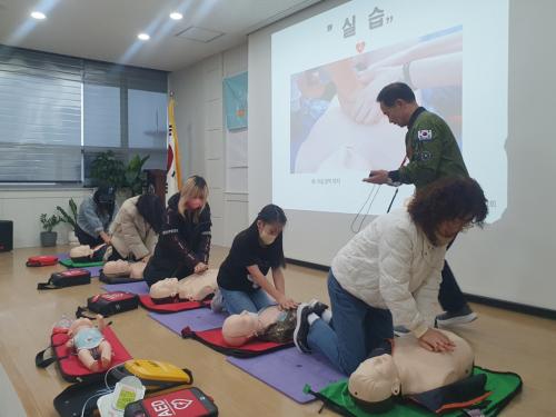 [½Åµ¿¾Æ¹æ¼Û ½ÃÈï½Ã=À̽ŵ¿±âÀÚ] ½ÃÈï½Ã ±ºÀÚµ¿ ÇàÁ¤º¹Áö¼¾ÅÍ´Â Áö³­ 20ÀÏ Á÷¿ø ¹× Áö¿ªÁֹεéÀÇ ÀÀ±Þ»óȲ ´ëó ´É·Â °­È­¸¦ À§ÇØ ¡®»ý¸íÀ» »ì¸®´Â 4ºÐÀÇ ±âÀû, ½ÉÆó¼Ò»ý¼ú ±³À°¡¯À» ½Ç½ÃÇß´Ù. À̹ø ±³À°¿¡´Â µ¿ ÇàÁ¤º¹Áö¼¾ÅÍ Á÷¿ø ¹× Áö¿ª ÁֹΠÃÑ 29¸íÀÌ Âü¿©ÇßÀ¸¡¦