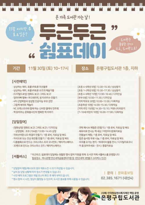 ÀºÆò±¸¸³µµ¼­°ü, ¡®11¿ù µÎ±ÙµÎ±Ù, ½°Ç¥µ¥ÀÌ!¡¯ ¿î¿µ
