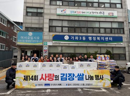 [½Åµ¿¾Æ¹æ¼Û ÀÎõ= À±¹Î½Ä±âÀÚ] °¡Áµ¿¿¡ À§Ä¡ÇÑ ¢ß¸®ÆÑ(´ëÇ¥ ÀÌ»ó°Ç)Àº Áö³­ 20ÀÏ(¼ö)¿¡ °¡ÁÂ3µ¿ ÇàÁ¤º¹Áö¼¾ÅÍ(µ¿Àå ±è¼ºÁÖ)¿¡ ±èÄ¡(10kg) 180¹Ú½º¿Í ¾ç°î(10kg) 120Æ÷¸¦ Àü´ÞÇÏ¿´´Ù. À̳¯ ÀÌ»ó°Ç ´ëÇ¥´Â ±è¼ºÁÖ µ¿Àå ¹× °¡ÁÂ3µ¿ ÅëÀåÀÚÀ²È¸(ȸÀå ±èÁ¾ÇÊ), ÁֹΡ¦