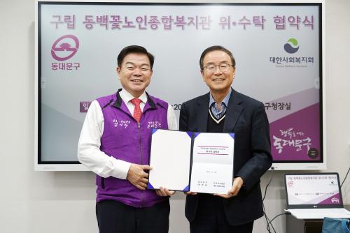 [½Åµ¿¾Æ¹æ¼Û µ¿´ë¹®±¸=À̽ŵ¿±âÀÚ] µ¿´ë¹®±¸´Â 11¿ù 26ÀÏ ±¸Ã»Àå½Ç¿¡¼­ »çȸº¹Áö¹ýÀÎ ´ëÇÑ»çȸº¹Áöȸ¿Í ÇÔ²² ±¸¸³ µ¿¹é²É³ëÀÎÁ¾ÇÕº¹Áö°üÀÇ °ü¸®¡¤¿î¿µ¿¡ °üÇÑ À§¡¤¼öŹ Çù¾à½ÄÀ» °¡Á³´Ù. À̹ø¿¡ ½Å¼³µÇ´Â ±¸¸³ µ¿¹é²É³ëÀÎÁ¾ÇÕº¹Áö°üÀº Àü³óµ¿ 146¹øÁö ÀÏ´ë(¼­¿ï½Ã¸³´ë¡¦