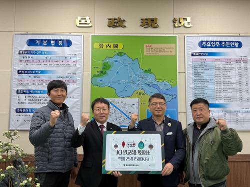 [½Åµ¿¾Æ¹æ¼Û Àü³²º¸¼º=¹Ú±¤¿Á±âÀÚ] º¸¼º±ºÀº Áö³­ 11¿ù 27ÀÏ JCI¹ú±³Ã»³âȸÀǼÒ(ȸÀå Á¶¼¼¿õ)°¡ ¹ú±³½ºÆ÷Ã÷¼¾ÅÍ¿¡¼­ ȸÀå ¹× ÀÓ¿ø ÀÌ»ç ÀÌ¡¤ÃëÀÓ½Ä Çà»ç ÈÄ ÃàÇÏ ½Ò 500kgÀ» ¹ú±³À¾»ç¹«¼Ò¿¡ ±âŹÇß´Ù°í ¹àÇû´Ù. À̳¯ Çà»ç´Â 100¿© ¸íÀÌ Âü¼®ÇßÀ¸¸ç, ÀÌÀÓÇÏ´Â JCI¡¦