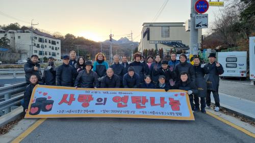 [½Åµ¿¾Æ¹æ¼Û µµºÀ±¸=À̽ŵ¿±âÀÚ] µµºÀ±¸ µµºÀ1µ¿Àº 12¿ù 3ÀÏ µµºÀ°ÇÃà»çȸ¿Í ÇÔ²² ¡®»ç¶ûÀÇ ¿¬Åº ³ª´®¡¯ ºÀ»çȰµ¿À» ÁøÇàÇß´Ù. À̳¯ µµºÀ°ÇÃà»çȸ À̱âÇРȸÀå ¹× È¸¿ø 20¸íÀº ¹«¼ö°ñ Áö¿ª ¿¡³ÊÁö Ãë¾à°èÃþ 8°¡±¸¿¡ ¿¬Åº 1,600ÀåÀ» Àü´ÞÇß´Ù. µµºÀ°ÇÃà»çȸ´Â Àú¼Ò¡¦