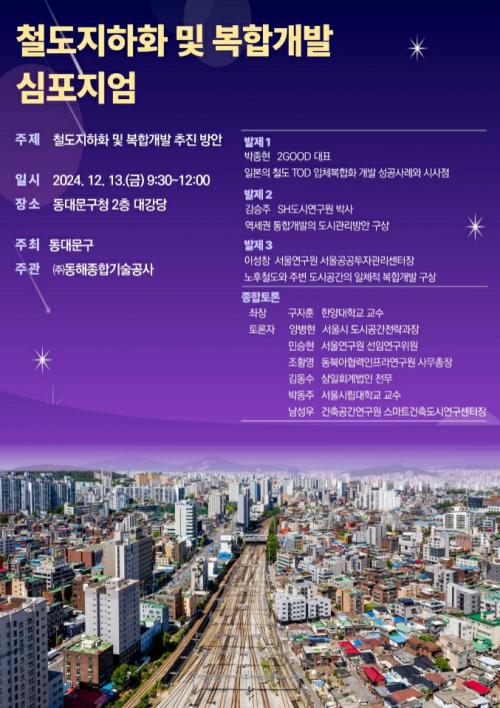 [½Åµ¿¾Æ¹æ¼Û µ¿´ë¹®±¸=À̽ŵ¿±âÀÚ] µ¿´ë¹®±¸´Â ¿À´Â 13ÀÏ ±¸Ã» 2Ãþ ´ë°­´ç¿¡¼­ 'öµµÁöÇÏÈ­ ¹× º¹ÇÕ°³¹ß ½ÉÆ÷Áö¾ö'À» °³ÃÖÇÑ´Ù°í ¹àÇû´Ù. À̹ø ½ÉÆ÷Áö¾öÀº µ¿´ë¹®±¸ÀÇ °ø°£Çõ½Å±¸¿ª Á¶¼º°ú öµµÁöÇÏÈ­ »ç¾÷ÀÇ ÀÏȯÀ¸·Î, ¹Ì·¡ÁöÇâÀûÀÎ µµ½Ã °³¹ß ¹æÇâÀ» ¸ð»öÇϱâ À§ÇØ¡¦