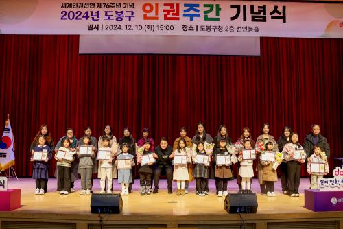 [½Åµ¿¾Æ¹æ¼Û µµºÀ±¸=À̽ŵ¿±âÀÚ] µµºÀ±¸´Â Áö³­ 12¿ù 10ÀÏ µµºÀ±¸Ã» 2Ãþ ¼±ÀκÀȦ¿¡¼­ 2024³â ÀαÇÁÖ°£ ±â³ä½ÄÀ» °³ÃÖÇß´Ù. À̳¯ ±â³ä½Ä¿¡´Â ±¸¹Î 500¿© ¸íÀÌ Âü¼®ÇØ Áö¿ª ³» Àαǿ¡ ´ëÇÑ °ü½ÉÀ» ½Ç°¨ÄÉ Çß´Ù. ±â³ä½ÄÀº ½ÄÀü°ø¿¬, ±â³ä»ç, ÀαÇÀÛǰ°ø¸ðÀü ½Ã»ó, Àαǡ¦