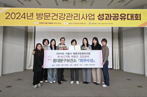 [½Åµ¿¾Æ¹æ¼Û µ¿´ë¹®±¸=À̽ŵ¿±âÀÚ] µ¿´ë¹®±¸°¡ 13ÀÏ ¼­¿ï½Ãû ¼­¼Ò¹®Ã»»ç¿¡¼­ ¿­¸° 2024³â ¹æ¹®°Ç°­°ü¸®»ç¾÷ ¼º°ú°øÀ¯´ëȸ¿¡¼­ ¡®AI‧IoT±â¹Ý ¾î¸£½Å °Ç°­°ü¸®»ç¾÷¡¯ ºÎ¹® ÃÖ¿ì¼ö»óÀ» ¼ö»óÇß´Ù. µ¿´ë¹®±¸º¸°Ç¼Ò´Â ´Ù¾çÇÑ È«º¸ Àü·«°ú ¸ÂÃãÇü °Ç°­±³½Ç ¹× ÄÜÅÙÃ÷¡¦