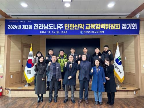 [½Åµ¿¾Æ¹æ¼Û Àü³²³ªÁÖ=À̽ŵ¿±âÀÚ] Àü¶ó³²µµ³ªÁÖ±³À°Áö¿øÃ»Àº 2024³â 12¿ù 16ÀÏ ´ëȸÀǽǿ¡¼­ 2024³â Á¦3ȸ Àü¶ó³²µµ³ªÁÖ ¹Î°ü»êÇÐ ±³À°Çù·ÂÀ§¿øÈ¸ Á¤±âȸ¸¦ °³ÃÖÇÏ¿´´Ù. À̹ø Á¤±âȸ¿¡¼­´Â ¡®³ªÁÖ±³À° 2025(¾È)¡¯À» ÀÚ¹®Çϸç, 2025³â ³ªÁÖ±³À° ÁÖ¿ä Á¤Ã¥°ú Çö¾È¿¡ ´ë¡¦