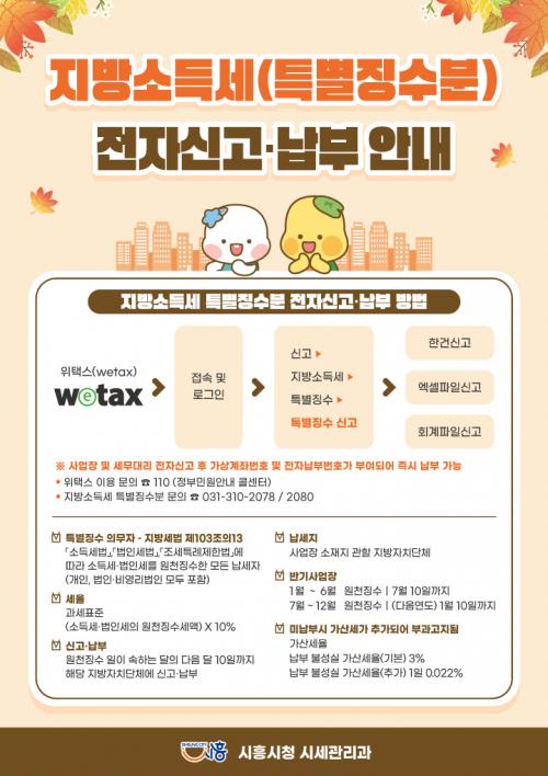 [½Åµ¿¾Æ¹æ¼Û ½ÃÈï½Ã=À̽ŵ¿±âÀÚ] ½ÃÈï½Ã´Â ³³¼¼ÀÚµéÀÌ Áö¹æ¼Òµæ¼¼ Ưº°Â¡¼öºÐÀ» ´õ Æí¸®ÇÏ°Ô ½Å°íÇÏ°í ³³ºÎÇÒ ¼ö ÀÖµµ·Ï À§Åýº(www.wetax.go.kr)¸¦ ÀÌ¿ëÇÑ ÀüÀÚ½Å°í¡¤³³ºÎ ¹æ¹ý¿¡ ´ëÇØ ÁýÁß È«º¸¿¡ ³ª¼¹´Ù. Áö¹æ¼Òµæ¼¼(Ưº°Â¡¼ö)´Â ±Ù·Î¼Òµæ°ú ÀÌÀÚ¼Òµæ, »ç¾÷¼Òµæ ¡¦