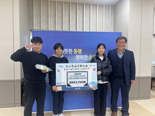 [½Åµ¿¾Æ¹æ¼Û Àü³²Çس²=À̽ŵ¿±âÀÚ] ¼ÛÁöÃʵîÇб³´Â 12¿ù 10ÀÏ ´Þ¸¶ ³ª´® ÀåÅÍ ¼öÀÍ±Ý Àü¾×ÀÎ 853,700¿øÀ» ¼ÛÁö ¸é»ç¹«¼Ò¿¡ ±âºÎÇß´Ù. ¼ÛÁöÃÊ´Â 11¿ù 29ÀÏ ´Þ¸¶ ³ª´® ÀåÅ͸¦ ½Ç½ÃÇß´Ù. ´Þ¸¶ ³ª´® ÀåÅÍ´Â À¯Ä¡¿øÀ» Æ÷ÇÔÇÑ Àü±³»ýÀÌ Âü¿©ÇÏ¿© ³ª´®À» ½ÇõÇÏ¿´´Ù. ¶ÇÇÑ, ÇкΡ¦
