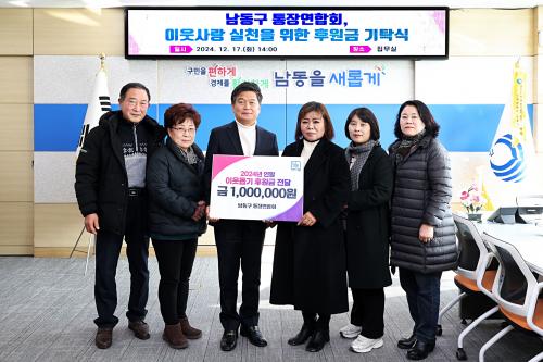 [½Åµ¿¾Æ¹æ¼Û ÀÎõ= À±¹Î½Ä±âÀÚ] ÀÎõ½Ã ³²µ¿±¸´Â ÅëÀ忬ÇÕȸ·ÎºÎÅÍ 2024³â ¿¬¸» ÀÌ¿ôµ½±â ÈÄ¿ø±Ý 100¸¸ ¿øÀ» Àü´Þ¹Þ¾Ò´Ù°í 20ÀÏ ¹àÇû´Ù. Àü´ÞµÈ ÈÄ¿ø±ÝÀº »çȸº¹Áö°øµ¿¸ð±Ýȸ¸¦ ÅëÇØ ³²µ¿±¸ Àú¼Òµæ °¡Á¤ µî Ãë¾à°èÃþ°ú »çȸº¹Áö½Ã¼³ Áö¿ø¿¡ »ç¿ëµÈ´Ù. ±ÇÀºÁÖ ¡¦
