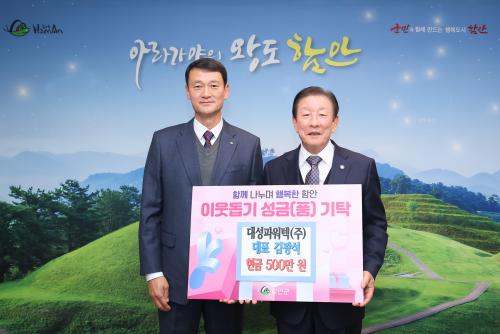[½Åµ¿¾Æ¹æ¼Û °æ³²ÇÔ¾È=À̽ŵ¿±âÀÚ] ´ë¼ºÆÄ¿öÅØ(ÁÖ)´Â 23ÀÏ ÇԾȱº¿¡ ¾î·Á¿î ÀÌ¿ôÀ» À§ÇØ ½á´Þ¶ó¸ç ¼º±Ý 500¸¸ ¿øÀ» ±âŹÇß´Ù. À̳¯ ±âŹ½Ä¿¡´Â Á¶±ÙÁ¦ ÇԾȱº¼ö¿Í ´ë¼ºÆÄ¿öÅØ(ÁÖ) ´ëÇ¥ ±è±¤¼® ¿Ü °ü°èÀÚµéÀÌ Âü¼®ÇßÀ¸¸ç, ±âŹµÈ ¼º±Ý 500¸¸ ¿øÀº °æ³²»çȸº¹Áö°øµ¿¸ð¡¦