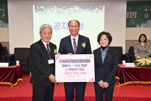[½Åµ¿¾Æ¹æ¼Û Çϳ²½Ã=À̽ŵ¿±âÀÚ] Çϳ²½Ã±â¾÷ÀÎÇùÀÇȸ´Â Áö³­ 17ÀÏ Á¦10´ë-11´ë ȸÀå ÀÌÃëÀÓ½ÄÀ» ÁøÇà ÇÑ ÈÄ Çϳ²½Ã¹Ì»ç°­º¯Á¾ÇÕ»çȸº¹Áö°ü¿¡ »ç¶ûÀÇ ¹é¹Ì ÃÑ 710kgÀ» Àü´ÞÇÏ¿´´Ù. À̳¯ Çà»ç´Â Çϳ²½Ã±â¾÷ÀÎÇùÀÇȸ 10´ë ÀÌÈñ±Ù ȸÀåÀÌ ÀÌÀÓÇϰí 11´ë ±è½ÂÇö ȸÀåÀÌ Ã롦
