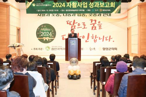 [½Åµ¿¾Æ¹æ¼Û °æ³²ÇÔ¾È=À̽ŵ¿±âÀÚ] ÇÔ¾ÈÁö¿ªÀÚȰ¼¾ÅÍ´Â Áö³­ 12¿ù 20ÀÏ ÇԾȹ®È­¿¹¼úȸ°ü ´Ù¸ñÀûȦ¿¡¼­ ¡®2024³â ÀÚȰ»ç¾÷ ¼º°úº¸°íȸ¡¯¸¦ °³ÃÖÇß´Ù. ¡®¶¡À¸·Î ²ÞÀ» µðÀÚÀÎÇÏ´Ù¡¯¶ó´Â ½½·Î°Ç ¾Æ·¡ 2024³â ÇÑ ÇØ µ¿¾È ÀÚȰ»ç¾÷ÀÇ ¼º°ú¸¦ º¸¿©ÁØ À̹ø º¸°íȸ´Â, Á¶±ÙÁ¦¡¦