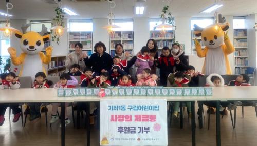 [½Åµ¿¾Æ¹æ¼Û ÀÎõ= À±¹Î½Ä±âÀÚ] °¡ÁÂ1µ¿ ÇàÁ¤º¹Áö¼¾ÅÍ´Â Áö³­ 23ÀÏ, ±¸¸³°¡ÁÂ1µ¿¾î¸°ÀÌÁý(¿øÀå ±è¿µ±Ý)¿¡¼­ ÁøÇàÇÑ ¡®»ç¶ûÀÇ Àú±ÝÅ롯 ±âºÎ Çà»ç¸¦ ÅëÇØ ¼ÒÁßÇÑ ³ª´®À» Àü´Þ¹Þ¾Ò´Ù. ¾î¸°ÀÌÁýÀÇ ¾î¸°À̵éÀÌ Á¤¼º²¯ ¸ðÀº Àú±ÝÅë°ú ¿øÀå ¹× ±³Á÷¿øµéÀÌ ½Ê½ÃÀϹÝÀ¸¡¦
