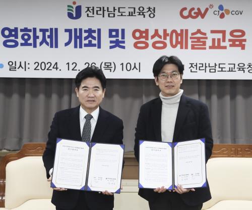 [½Åµ¿¾Æ¹æ¼Û Àü³²=À̽ŵ¿±âÀÚ] Àü¶ó³²µµ±³À°Ã»°ú CJ CGV´Â 26ÀÏ Àü³²±³À°Ã» ºñÁö´Ï½º½Ç¿¡¼­ ±Û·ÎÄà Çлý¿µÈ­Á¦ °³ÃÖ ¹× ¿µ»ó¿¹¼ú±³À° Ȱ¼ºÈ­¸¦ À§ÇÑ ¾÷¹«Çù¾àÀ» ü°áÇß´Ù. À̹ø Çù¾àÀº Áö³­ 11¿ù CGV¸ñÆ÷ÆòÈ­±¤ÀåÁ¡¿¡¼­ ¼ºÈ²¸®¿¡ ¿­¸° ¡®Á¦1ȸ Àü¶ó³²µµ±³À°Ã» ÀÛÀºÇС¦