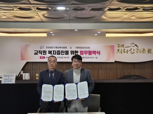 [½Åµ¿¾Æ¹æ¼Û Àü³²±¸·Ê=À̽ŵ¿±âÀÚ] ±¸·Ê±³À°Áö¿øÃ»ÀÌ Áö³­ 12¿ù 27ÀÏ, ±¸·ÊÁö¸®»ê¸®Á¶Æ®¿Í ±³Á÷¿ø º¹Áö ÁõÁøÀ» À§ÇÑ ¾÷¹« Çù¾àÀ» ü°áÇß´Ù°í ¹àÇû´Ù. À̹ø Çù¾àÀº ±¸·Ê Áö¿ª ±³À° °¡Á·µéÀÇ È޽İú ÀçÃæÀüÀ» Áö¿øÇϰí, ³ª¾Æ°¡ Áö¿ª °æÁ¦ Ȱ¼ºÈ­¿¡µµ ±â¿©ÇÒ °ÍÀ¸·Î ±â¡¦