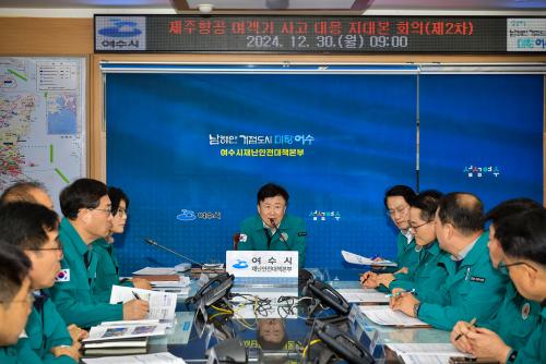 [½Åµ¿¾Æ¹æ¼ÛÀü³²¿©¼ö=±è±â³² ±âÀÚ] Á¤±â¸í ¿©¼ö½ÃÀåÀÌ 30ÀÏ ¿ÀÀü Á¦ÁÖÇ×°ø ¿©°´±â »ç°í °ü·Ã 2Â÷ Áö¿ªÀç³­¾ÈÀü´ëÃ¥º»ºÎ ȸÀǸ¦ ÁÖÀç, ¡°Èñ»ýÀÚ 5¸í¿¡ ´ëÇÑ Àå·Ê µî Áö¿ø¿¡ ÃÖ¼±À» ´ÙÇ϶󡱰í Áö½ÃÇß´Ù. ½Ã¿¡ µû¸£¸é, À̳¯ ȸÀÇ´Â Á¤ ½ÃÀåÀ» ºñ·ÔÇØ ºÎ½ÃÀå µî °£ºÎ¡¦