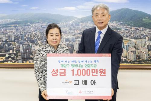 [½Åµ¿¾Æ¹æ¼Û ÀÎõ= À±¹Î½Ä±âÀÚ] ÀÎõ±¤¿ª½Ã °è¾ç±¸(±¸Ã»Àå À±È¯)´Â Áö³­ 27ÀÏ (ÁÖ)ÄÚº£¾Æ(ȸÀå °­Çý±Ù)°¡ Áö¿ª ³» ¾î·Á¿òÀ» °Þ°í ÀÖ´Â ÀÌ¿ôµéÀ» À§ÇØ ½á´Þ¶ó¸ç ÀÌ¿ô µ½±â ¼º±Ý 1,000¸¸ ¿øÀ» ±âŹÇß´Ù°í ¹àÇû´Ù. °è¾ç±¸ ¼­¿î»ê¾÷´ÜÁö¿¡ ¼ÒÀçÇÑ µî»ê¿ëǰ ¹× Ä·Çοëǰ¡¦