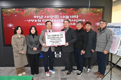 [½Åµ¿¾Æ¹æ¼Û Çϳ²½Ã=À̽ŵ¿±âÀÚ] Áö³­ 27ÀÏ ¾çÆò³óÇù ģȯ°æ³ó»ê¹° À¯Åë»ç¾÷º»ºÎ´Â ¿¬¸»À» ¸ÂÀÌÇÏ¿© Çϳ²½Ã¿¡ ¹°¸¼Àº¾çÆò½Ò 100Æ÷¸¦ ±âºÎÇÏ°í ±âŹ½ÄÀ» °¡Á³´Ù. À̳¯ ±âŹ½Ä¿¡´Â ÀÌÇöÀç Çϳ²½ÃÀåÀ» ºñ·ÔÇÏ¿© ¾çÆò³óÇù ÇÑÇö¼ö Á¶ÇÕÀå, ģȯ°æ³ó»ê¹° À¯Åë»ç¾÷º»ºÎ ¾È¿ë¡¦