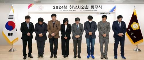 [½Åµ¿¾Æ¹æ¼Û Çϳ²½Ã=À̽ŵ¿±âÀÚ] Çϳ²½ÃÀÇȸ´Â 31ÀÏ ½ÃÀÇȸ ÀÇÁ¤È¦¿¡¼­ Á¾¹«½ÄÀ» °®°í 2024³â °ø½Ä ÀÏÁ¤À» ¸¶¹«¸®Çß´Ù. Á¾¹«½Ä¿¡ ¾Õ¼­ ½ÃÀÇ¿øµé°ú ÀÇȸ»ç¹«±¹ Á÷¿øµéÀº Áö³­ 29ÀÏ ¹ß»ýÇÑ Á¦ÁÖÇ×°ø ¿©°´±â »ç°í Èñ»ýÀÚµéÀ» Ã߸ðÇÏ¸ç ¹¬³äÀ¸·Î ¾ÖµµÀÇ ¶æÀ» ÀüÇß´Ù. ¡¦