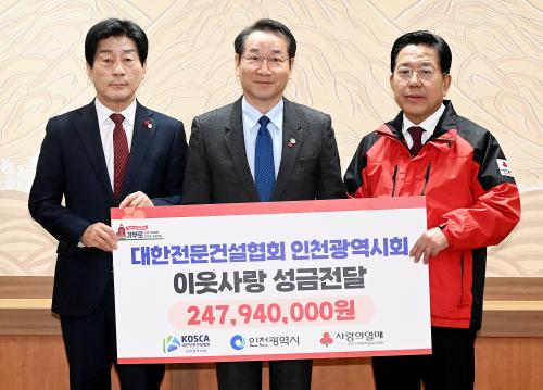 [½Åµ¿¾Æ¹æ¼Û ÀÎõ= À±¹Î½Ä±âÀÚ] ÀÎõ±¤¿ª½Ã(½ÃÀå À¯Á¤º¹)´Â ´ëÇÑÀü¹®°Ç¼³Çùȸ ÀÎõ±¤¿ª½Ãȸ(ȸÀå Á¶Èï¼ö)°¡ ¿¬¸»À» ¸Â¾Æ ºÒ¿ìÀÌ¿ôµ½±â ¼º±Ý 2¾ï 4,794¸¸ ¿øÀ» ÀÎõ»çȸº¹Áö°øµ¿¸ð±Ýȸ¿¡ ±âŹÇß´Ù°í ¹àÇû´Ù. ¼º±Ý Àü´Þ½ÄÀº 1¿ù 10ÀÏ ÀÎõ½Ãû ´ëÁ¢°ß½Ç¿¡¼­ À¯Á¤º¹ ÀΡ¦