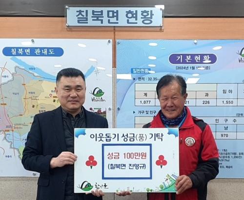 [½Åµ¿¾Æ¹æ¼Û °æ³²ÇÔ¾È=À̽ŵ¿±âÀÚ] ÇԾȱº Ä¥ºÏ¸éÀº Ä¥ºÏ¸é »êºÒ°¨½Ã¿ø Áø¿µ±Ô ¹ÝÀåÀÌ ÀÌ¿ôµ½±â ¼º±Ý 100¸¸¿øÀ» ±âŹÇß´Ù°í 13ÀÏ ¹àÇû´Ù. Áø¿µ±Ô ¹ÝÀåÀº ¸Å³â ²ÙÁØÈ÷ Èñ¸Á³ª´® Ä·ÆäÀο¡ Âü¿©Çϸç Áö¿ª»çȸº¹Áö ¹ßÀü°ú ³ª´® ¹®È­ È®»ê¿¡ ¾ÕÀå¼­°í ÀÖ´Ù. ¿ÃÇØµµ ÁÖº¯¡¦
