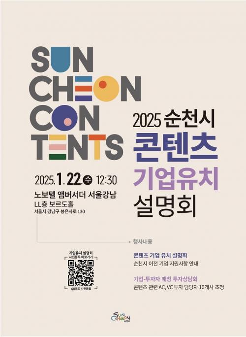 [½Åµ¿¾Æ¹æ¼Û ¼øÃµ=±è¿ëÈÆ ±âÀÚ] Àü³² ¼øÃµ½Ã(½ÃÀå ³ë°ü±Ô)°¡ ¿À´Â 22ÀÏ ¿ÀÈÄ 12½Ã 30ºÐ, ¼­¿ï °­³²(³ëº¸ÅÚ ¾Ú¹è¼­´õ)¿¡¼­ ¡®2025 ¼øÃµ½Ã ÄÜÅÙÃ÷ ±â¾÷À¯Ä¡ ¼³¸íȸ¡¯¸¦ °³ÃÖÇÑ´Ù°í ¹àÇû´Ù. À̹ø ¼³¸íȸ´Â ±¹³»․¿Ü ¹®È­ÄÜÅÙÃ÷ ±â¾÷ ´ë»óÀ¸·Î Ÿ ÁöÀÚü¿Í Â÷º°È­µÈ¡¦
