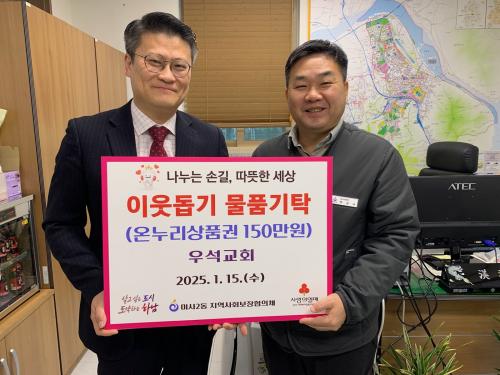 [½Åµ¿¾Æ¹æ¼Û Çϳ²½Ã=À̽ŵ¿±âÀÚ] Çϳ²½Ã ¸Á¿ùµ¿¿¡ ¼ÒÀçÇÑ ¿ì¼®±³È¸´Â 2025³â 1¿ù 15ÀÏ, ¹ÎÁ· ¸íÀý ¼³À» ¸ÂÀÌÇÏ¿© ¹Ì»ç2µ¿¿¡ °ÅÁÖÇÏ´Â Ãë¾à°èÃþÀ» À§ÇØ ÀüÇØ´Þ¶ó¸ç ¼ºµµµéÀÌ ¸¶À½À» ´ÙÇÏ¿© ¸ðÀº ¿Â´©¸®»óǰ±Ç 150¸¸¿øÀ» ±âŹÇÏ¿´´Ù. ¿ì¼®±³È¸ ±è¿ø¹® ´ãÀÓ¸ñ»ç´Â¡°Áö¿ª¡¦