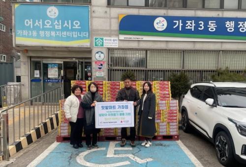 [½Åµ¿¾Æ¹æ¼Û = À±¹Î½Ä±âÀÚ] °¡ÁÂ3µ¿ ÅԹ縶Ʈ(´ëÇ¥ ³ëÇü±Õ)´Â ¹ÎÁ· ´ë¸íÀý ¼³³¯À» ¸Â¾Æ Áö³­ 1¿ù 16ÀÏ(¸ñ) °¡ÁÂ3µ¿ ÇàÁ¤º¹Áö¼¾ÅÍ(µ¿Àå ±è¼ºÁÖ)¸¦ ¹æ¹®ÇÏ¿© ¼³¸ÂÀÌ »ç¶ûÀÇ ÀÌ¿ôµ½±â ¹°Ç°(ÄŶó¸é 300¹Ú½º)À» Àü´ÞÇß´Ù. ³ëÇü±Õ ÅԹ縶Ʈ ´ëÇ¥´Â ¡°È¥¶õ½º·¯¿î ½Ã±â¿¡¡¦