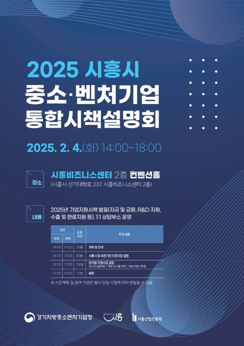 [½Åµ¿¾Æ¹æ¼Û ½ÃÈï½Ã=À̽ŵ¿±âÀÚ] ½ÃÈï½Ã´Â ¿À´Â 2¿ù 4ÀÏ ¿ÀÈÄ 2½Ã ½ÃÈïºñÁî´Ï½º¼¾ÅÍ 2Ãþ ÄÁº¥¼ÇȦ¿¡¼­¡®2025³â Áß¼Ò±â¾÷ Áö¿ø½ÃÃ¥ ÅëÇÕ ¼³¸íȸ¡¯¸¦ °³ÃÖÇÑ´Ù. À̹ø ¼³¸íȸ¿¡´Â ½ÃÈï½Ã, Áß¼Òº¥Ã³±â¾÷ºÎ, °æ±âµµ µî 26°³ ±â¾÷Áö¿ø ±â°üÀÌ Âü¿©ÇØ ÀÚ±Ý ¹× ±ÝÀ¶Áö¿ø, ÆÇ·Î¡¦