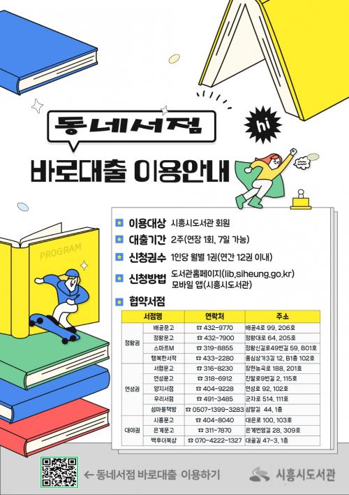 [½Åµ¿¾Æ¹æ¼Û ½ÃÈï½Ã=À̽ŵ¿±âÀÚ] ½ÃÈï½Ãµµ¼­°üÀº Áö¿ª ¼­Á¡°úÀÇ Çù¾àÀ» ÅëÇØ ¡®2025³â µ¿³×¼­Á¡ ¹Ù·Î´ëÃ⡯ ¼­ºñ½º¸¦ ½ÃÇà ÁßÀÌ´Ù. ÀÌ ¼­ºñ½º´Â ½Ã¹ÎµéÀÌ ¿øÇϴ åÀ» °¡±î¿î µ¿³×¼­Á¡¿¡¼­ »õ Ã¥À¸·Î ºô·Á ÀÐ°í ¹Ý³³ÇÒ ¼ö ÀÖ°Ô ÇØ µ¶¼­ ÆíÀǸ¦ ³ôÀ̰í ÀÖ´Ù. ƯÈ÷ ¡®µ¿¡¦