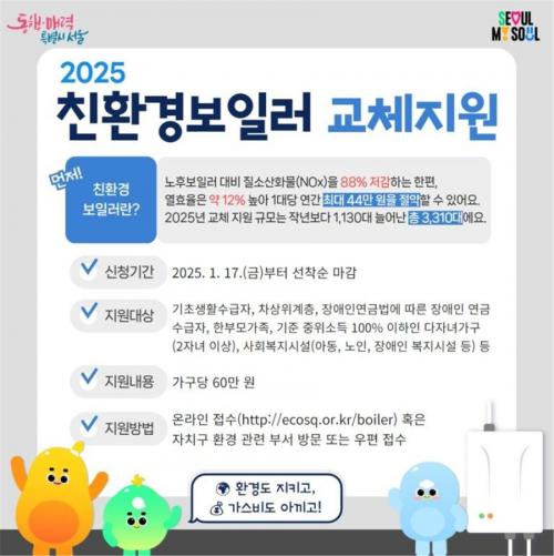 [½Åµ¿¾Æ¹æ¼Û µ¿´ë¹®±¸=À̽ŵ¿±âÀÚ] µ¿´ë¹®±¸°¡ ¹Ì¼¼¸ÕÁö¸¦ ÁÙÀÌ°í ³­¹æºñµµ Àý¾àÇÒ ¼ö ÀÖ´Â ¡®°¡Á¤¿ë ģȯ°æ º¸ÀÏ·¯¡¯ ¼³Ä¡¸¦ Áö¿øÇÑ´Ù. ¡®°¡Á¤¿ë ģȯ°æ º¸ÀÏ·¯¡¯´Â 10³â ÀÌ»ó ³ëÈĺ¸ÀÏ·¯ ´ëºñ Áú¼ÒÈ­ÇÕ¹°(NOx)À» 88% Àú°¨Çϸ鼭 ¿­È¿À²Àº ¾à 12% ³ô¾Æ °¡½ººñ¸¦ ¿¬°£¡¦