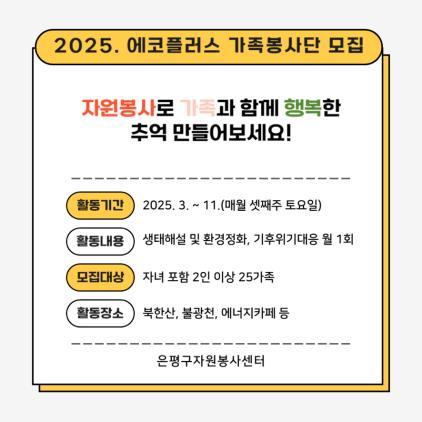 [½Åµ¿¾Æ¹æ¼Û ÀºÆò±¸=À̽ŵ¿±âÀÚ] ÀºÆò±¸´Â ±âÈÄ À§±â ´ëÀÀ°ú ź¼ÒÁ߸³À» À§ÇØ ³»´Þ 14ÀϱîÁö ¡®¿¡ÄÚÇ÷¯½º °¡Á·ºÀ»ç´Ü¡¯À» ¸ðÁýÇÑ´Ù°í ¹àÇû´Ù. ¡®¿¡ÄÚÇ÷¯½º °¡Á·ºÀ»ç´Ü¡¯Àº °¡Á· ºÀ»çȰµ¿À» ÅëÇØ °Ç°­ÇÑ °¡Á·¹®È­¸¦ ¸¸µé°í ÀÌ¿ô»ç¶ûÀ¸·Î È®»êÇØ ³ª°¡´Â µû¶æÇÑ Áö¿ª°ø¡¦