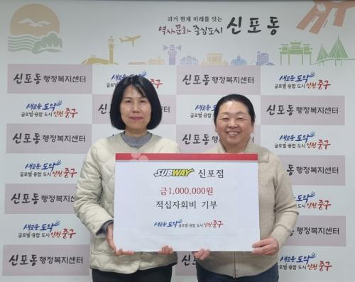 [½Åµ¿¾Æ¹æ¼Û ÀÎõ= À±¹Î½Ä±âÀÚ] À»»ç³â »õÇØ¸¦ ¸ÂÀÌÇØ ÀÎõ Áß±¸ ½ÅÆ÷µ¿ Áö¿ª ¼Ò»ó°øÀÎÀÌ Àû½ÊÀÚȸºñ ±âºÎ·Î ÀÌ¿ô»ç¶û ½Çõ¿¡ ³ª¼­ ±Í°¨ÀÌ µÇ°í ÀÖ´Ù. Áö³­ 1¿ù 31ÀÏ ½áºê¿þÀÌ(SUBWAY) ½ÅÆ÷Á¡ÀÇ À念¹Ì ´ëÇ¥´Â ÀÎõ Áß±¸ ½ÅÆ÷µ¿ ÇàÁ¤º¹Áö¼¾ÅÍ¿¡ Àû½ÊÀÚ Æ¯º°È¸ºñ 1¡¦