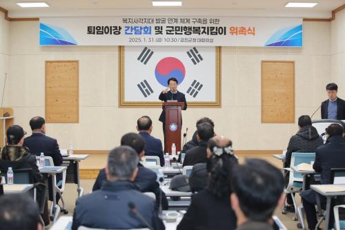 [½Åµ¿¾Æ¹æ¼Û Àü³²°­Áø=¹Ú±¤¿Á±âÀÚ] °­Áø±ºÀÌ Áö³­´Þ 31ÀÏ, ±ºÃ» ´ëȸÀǽǿ¡¼­ ±º¹ÎÇູÁöÅ´ÀÌ´Ü À§Ã˽ÄÀ» °³ÃÖÇß´Ù. À̹ø Çà»ç´Â 2025³â ÅðÀÓÀÌÀå 47¸íÀÌ Âü¼®ÇÑ °¡¿îµ¥ º¹Áö»ç°¢Áö´ë ¹ß±¼ ¹× ¿ª·®±³À°°ú ÇÔ²² À§Ã˽ÄÀÌ ÁøÇàµÆ´Ù. À̹ø¿¡ À§ÃËµÈ ±º¹ÎÇູÁöÅ´ÀÌ´Ü¡¦