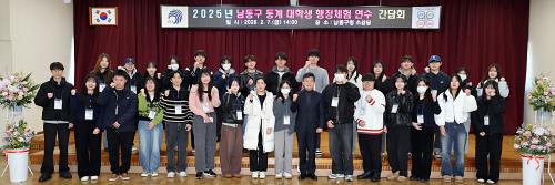 [½Åµ¿¾Æ¹æ¼Û ÀÎõ= À±¹Î½Ä±âÀÚ] ÀÎõ½Ã ³²µ¿±¸´Â ±¸Ã» ¼Ò°­´ç¿¡¼­ µ¿°è ÇàÁ¤Ã¼Çè ¿¬¼ö Âü¿© ´ëÇлýµé°úÀÇ °£´ãȸ¸¦ °³ÃÖÇß´Ù°í 12ÀÏ ÀüÇß´Ù. °£´ãȸ´Â 1¿ù 13ÀϺÎÅÍ 2¿ù 7ÀϱîÁö 20Àϰ£ ÇàÁ¤Ã¼Çè ¿¬¼ö¿¡ Âü¿©ÇÏ´Â 30¸íÀÇ ´ëÇлýÀÌ ±Ù¹«Çϸ鼭 ´À³¤ Á¡°ú ¾Ö·Î»çÇ׿¡¡¦