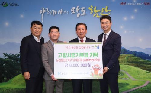 [½Åµ¿¾Æ¹æ¼Û °æ³²ÇÔ¾È=À̽ŵ¿±âÀÚ] ÇԾȱºÀº 17ÀÏ ³óÇù ÇԾȱºÁöºÎ ÀÓÁ÷¿ø ¹× ³óÇùÇÔ¾ÈÇâ¿ìȸ¿øµéÀÌ °íÇâ»ç¶û±âºÎ±Ý 600¸¸ ¿øÀ» ±âºÎÇß´Ù°í ¹àÇû´Ù. ³óÇù ÇԾȱºÁöºÎ´Â °íÇâ»ç¶û±âºÎÁ¦¸¦ ½ÃÇàÇÑ ÀÌ·¡ 3³â ¿¬¼ÓÀ¸·Î ±âºÎ¿¡ µ¿ÂüÇØ ¿À°í ÀÖ´Ù. À̳¯ ±º¼ö½Ç¿¡¼­ ¿­¸° ±â¡¦