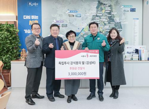 [½Åµ¿¾Æ¹æ¼Û ½ÃÈï½Ã=À̽ŵ¿±âÀÚ] ½ÃÈï½Ã¿¡ Áö³­ 24ÀÏ µ¶¸³Åõ»ç °í(ͺ) °­¼®ºÀ ¼±»ýÀÇ ÈļÕÀÌ ¹æ¹®ÇØ ½ÃÈï½Ã1%º¹ÁöÀç´ÜÀ» ÅëÇØ Àú¼ÒµæÃþÀ» Áö¿øÇÏ´Â ÈÄ¿ø±Ý 300¸¸ ¿øÀ» ±âŹÇß´Ù. µ¶¸³¿îµ¿°¡·Î Ȱµ¿ÇÑ °­¼®ºÀ ¼±»ýÀº 1942³â 2¿ù ÀϺ» ½ÅÈ£½Ã(ãêûÂã¼)¿¡¼­ ½Åµ¿ÇÏ ¼±»ý ¡¦