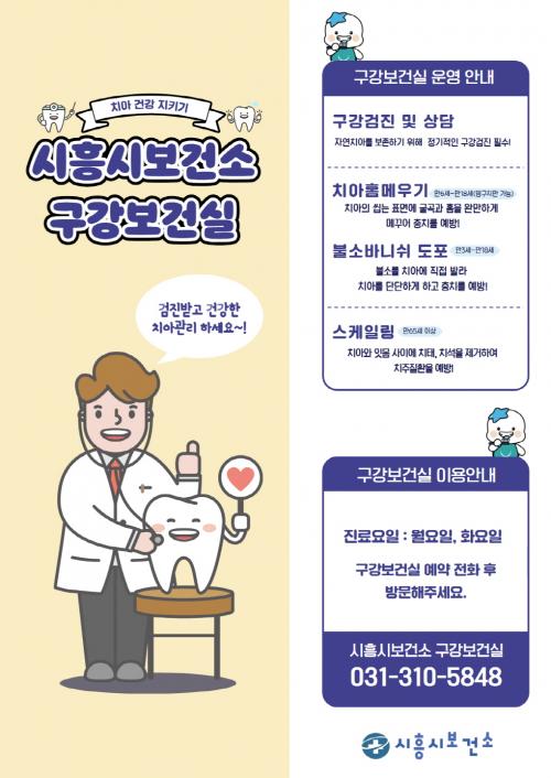[½Åµ¿¾Æ¹æ¼Û ½ÃÈï½Ã=À̽ŵ¿±âÀÚ] ½ÃÈï½Ã´Â ½Ã¹ÎµéÀÇ ±¸°­ °Ç°­ ÁõÁøÀ» À§ÇØ ´Ù¾çÇÑ ¿¹¹æ Áø·á¸¦ Á¦°øÇÏ´Â ±¸°­º¸°Ç½ÇÀ» ¿î¿µÇϰí ÀÖ´Ù. À̸¦ ÅëÇØ ½Ã¹ÎµéÀÌ °Ç°­ÇÑ ±¸°­ »óŸ¦ À¯ÁöÇÒ ¼ö ÀÖµµ·Ï ü°èÀûÀÎ ±¸°­ °ü¸® ¼­ºñ½º¸¦ Áö¿øÇϰí ÀÖ´Ù. ½ÃÈï½Ãº¸°Ç¼Ò ±¸°­º¸°Ç½Ç¡¦