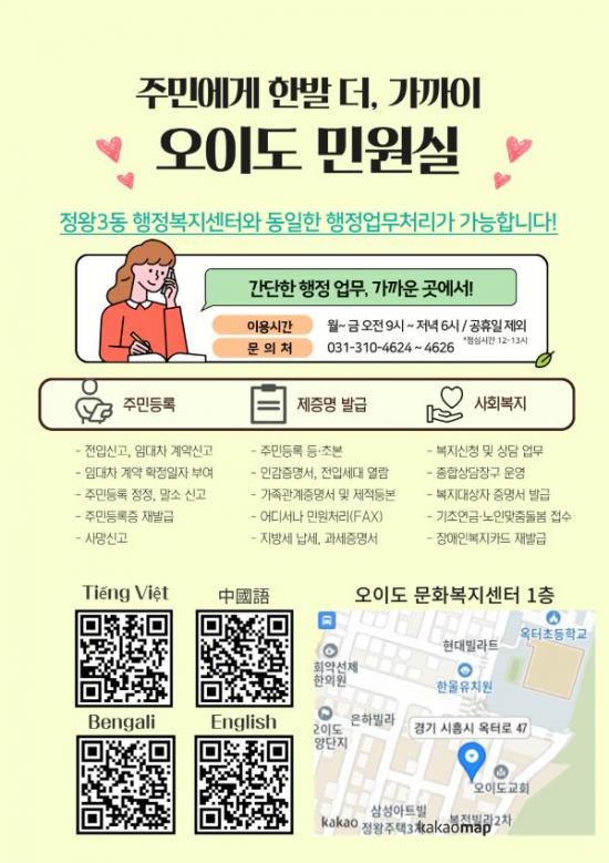 [½Åµ¿¾Æ¹æ¼Û ½ÃÈï½Ã=À̽ŵ¿±âÀÚ] ½ÃÈï½Ã Á¤¿Õ3µ¿ ÇàÁ¤º¹Áö¼¾ÅÍ´Â ¹Î¼± 8±â ÁÖ¿ä ½ÃÁ¤¹æÄ§ÀÎ ¡®Ã¥ÀÓµ¿ÀåÁ¦¡¯ÀÇ Á¤ÂøÀ» À§ÇØ ¿ÀÀ̵µ ¹Î¿ø½Ç ¿î¿µÀ» ´õ¿í °­È­ÇØ ÁֹΠºÒÆíÀ» ÃÖ¼ÒÈ­Çϰí, ½Å¼ÓÇÑ ÇàÁ¤¼­ºñ½º¸¦ Á¦°øÇÑ´Ù. ¿ÀÀ̵µ ÁֹεéÀº Á¤¿Õ3µ¿ ÇàÁ¤º¹Áö¼¾ÅÍ¿¡¼­ ¹Î¿ø¡¦