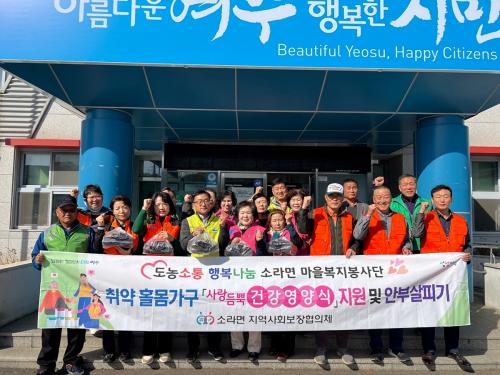 [½Åµ¿¾Æ¹æ¼ÛÀü³²¿©¼ö=±è±â³² ±âÀÚ] ¼Ò¶ó¸é ¸¶À»º¹ÁöºÀ»ç´Ü(´ÜÀå ¹ÚÈ«»ï, ÀÌ¿µÁø)Àº Áö³­ 14ÀÏ µ¶°Å³ëÀÎ, ÁßÁõÀå¾ÖÀÎ µî Ãë¾à°èÃþ 30°¡±¸¸¦ ¹æ¹®ÇØ ¡®»ç¶û µë»Ò °Ç°­¿µ¾ç½Ä¡¯À» Àü´ÞÇß´Ù. À̳¯ ´Ü¿øµéÀº ÀÏ´ëÀÏ·Î ¸ÅĪµÈ ´ë»óÀÚ °¡±¸¸¦ ã¾Æ ¹Ø¹ÝÂùÀ» Àü´ÞÇÏ°í ¾ÈºÎ¡¦
