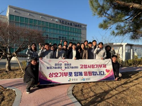 [½Åµ¿¾Æ¹æ¼Û Àü³²°­Áø= °­Áø±º ³ó¾÷±â¼ú¼¾ÅÍ¿Í ¿µ±¤±º ³ó¾÷±â¼ú¼¾ÅÍ Á÷¿øµéÀÌ Áö³­ 14ÀÏ »ó»ý ¹ßÀüÀÇ ¶æÀ» ¸ð¾Æ °íÇâ»ç¶û±âºÎ±Ý 410¸¸¿øÀ» »óÈ£ Áö¿ª¿¡ ±âºÎÇß´Ù. °­Áø±º ³ó¾÷±â¼ú¼¾ÅÍ ÃÖ¿µ¾Æ ¼ÒÀå, ±è¼ø¿Á ³óÃÌÁö¿ø°úÀå, ¹Ú°ü¿ì ¿¬±¸°³¹ß½ÇÀåÀ» ºñ·ÔÇÑ °­Áø±º Á÷¿ø ¡¦