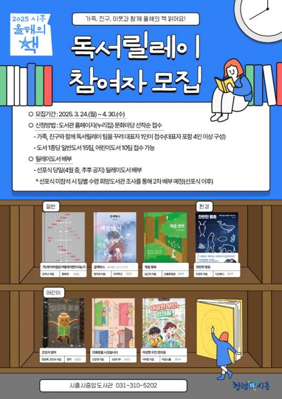 [½Åµ¿¾Æ¹æ¼Û ½ÃÈï½Ã=À̽ŵ¿±âÀÚ] ½ÃÈï½Ã°¡ ¹ü½Ã¹Î µ¶¼­ ¿îµ¿ÀÇ Çϳª·Î ¡®2025 ½ÃÈï ¿ÃÇØÀÇ Ã¥¡¯ ÃÖÁ¾ ¼±Á¤ µµ¼­ 7±ÇÀ» ¹ßÇ¥Çß´Ù. À̹ø¿¡ ¼±Á¤µÈ µµ¼­´Â ÀϹݵµ¼­ 3±Ç, ¾î¸°À̵µ¼­ 3±Ç, ȯ°æ ºÐ¾ß ½ÃÈï ÇÑ Ã¥ 1±ÇÀ¸·Î, ½Ã¹ÎµéÀÇ Âü¿©¿Í ÅõÇ¥¸¦ ÅëÇØ °áÁ¤µÆ´Ù. ÀϹݡ¦