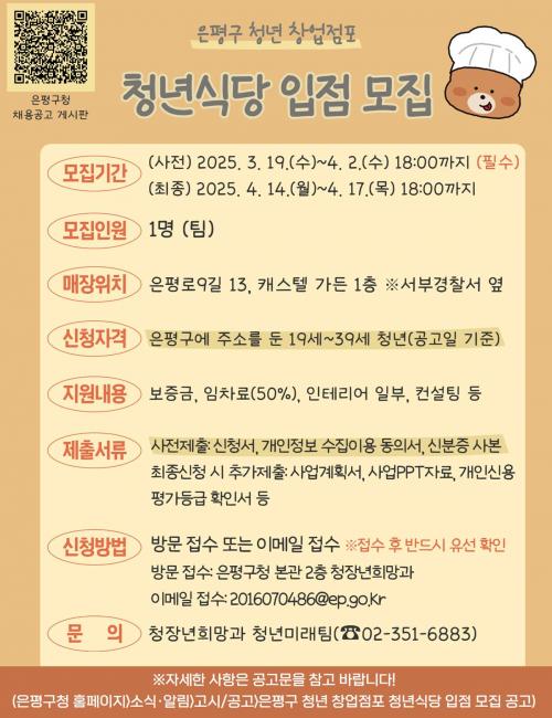 ÀºÆò±¸, ¡®Ã»³â½Ä´ç¡¯ ÀÔÁ¡ÀÚ ¸ðÁý¡¦ º¸Áõ±Ý Àü¾× Áö¿ø