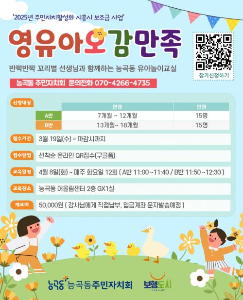 [½Åµ¿¾Æ¹æ¼Û ½ÃÈï½Ã=À̽ŵ¿±âÀÚ] ½ÃÈï½Ã ´É°îµ¿ ÁÖ¹ÎÀÚġȸ´Â ¡®2025³â ÁÖ¹ÎÀÚÄ¡ Ȱ¼ºÈ­ »ç¾÷¡¯À¸·Î ¿µÀ¯¾Æ ¿À°¨¸¸Á· ÇÁ·Î±×·¥¡¯ º½Çб⸦ ¿À´Â 4¿ù 8ÀϺÎÅÍ 7¿ù 1ÀϱîÁö ¸ÅÁÖ È­¿äÀÏ ¿ÀÀü 11½Ã¿¡ ´É°îµ¿ ¾î¿ï¸²¼¾ÅÍ¿¡¼­ ¿î¿µÇÑ´Ù. À̹ø ÇÁ·Î±×·¥Àº 2023³âµµ ½Ã¹ü»ç¾÷¡¦