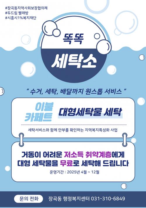 [½Åµ¿¾Æ¹æ¼Û ½ÃÈï½Ã=À̽ŵ¿±âÀÚ] ½ÃÈï½Ã Àå°îµ¿ÀÇ ¡®¶È¶È ¼¼Å¹¼Ò¡¯ »ç¾÷ÀÌ Áö³­ÇØ 249°¡±¸¿¡ ´ëÇü ¼¼Å¹¹° ¼¼Å¹ ¼­ºñ½º¸¦ Á¦°øÇϸç Å« È£ÀÀÀ» ¾òÀº °¡¿îµ¥, ¿ÃÇØ´Â Áö¿ø ´ë»óÀ» 270°¡±¸·Î È®´ëÇØ ¿î¿µµÈ´Ù. ¡®¶È¶È ¼¼Å¹¼Ò¡¯´Â È¥ÀÚ »ç´Â ¾î¸£½Å, Àå¾ÖÀÎ, Áúº´ µîÀ¸·Î¡¦