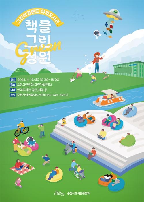 [½Åµ¿¾Æ¹æ¼Û ¼øÃµ=±è³²±â ±âÀÚ] ¼øÃµ½Ã(½ÃÀå ³ë°ü±Ô)´Â ¿À´Â 19ÀÏ ¿Àõ±×¸°±¤Àå µ¿Ãµº¯¿¡ À§Ä¡ÇÑ ±×¸°¾ÆÀÏ·£µå¿¡¼­ ÀÚÀ¯·Ó°Ô Ã¥À» ÀÐ°í ¹®È­°ø¿¬À» Áñ±â´Â ¾ß¿Üµµ¼­°ü ¡®Ã¥À» ±×¸°(Green) Á¤¿ø¡¯ Çà»ç¸¦ ¿î¿µÇÑ´Ù°í ¹àÇû´Ù. À̹ø Çà»ç´Â µµ¼­°üÀ̶ó´Â ¹°¸®Àû °ø°£À»¡¦
