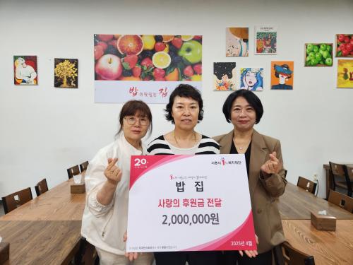 [½Åµ¿¾Æ¹æ¼Û ½ÃÈï½Ã=À̽ŵ¿±âÀÚ] ½ÃÈï½Ã Á¤¿Õ3µ¿ ½ºÆ¿·£µå ³»¿¡¼­ ÇÑ½ÄºßÆä ¡®¹äÁý¡¯À» ¿î¿µ ÁßÀÎ ÀÌÁ¤¾Ö ´ëÇ¥°¡ Áö³­ 5¿ù 1ÀÏ Á¤¿Õ3µ¿ Áö¿ª»çȸº¸ÀåÇùÀÇü¿¡ »ç¶ûÀÇ ÈÄ¿ø±Ý 200¸¸ ¿øÀ» Àü´ÞÇϸç ÀÌ¿ô »ç¶ûÀ» ½ÇõÇß´Ù. ¿ÀÀ̵µ¿¡ ÀÖ´Â ¡®¹äÁý¡¯Àº ´Ù¾çÇÑ ÇѽÄÀ» ºÎ´ã¡¦