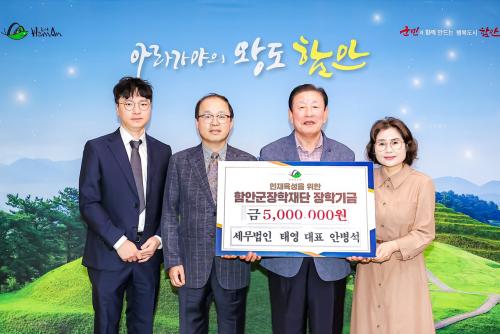 [½Åµ¿¾Æ¹æ¼Û °æ³²ÇÔ¾È=À̽ŵ¿±âÀÚ] ¼¼¹«¹ýÀÎ Å¿µ(â¿ø½Ã ¸¶»êÇÕÆ÷±¸ »êÈ£µ¿) ¾Èº´¼® ´ëÇ¥´Â 20ÀÏ ÇԾȱºÃ»À» ¹æ¹®ÇØ Áö¿ªÀÎÀçÀ°¼ºÀ» À§ÇÑ ÀåÇбâ±Ý 500¸¸ ¿øÀ» ±º ÀåÇÐÀç´Ü¿¡ ±âŹÇß´Ù. À̳¯ ±âŹ½Ä¿¡´Â ¾Èº´¼® ´ëÇ¥¿Í °ü°èÀÚ°¡ Âü¼®ÇØ Áö¿ªÀÇ ±³À° ¹ßÀü°ú ÀÎÀç ¾ç¡¦