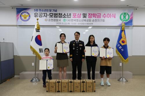 [½Åµ¿¾Æ¹æ¼Û Àü³²¼øÃµ=¹Ú±¤¿Á±âÀÚ] ¼øÃµ°æÂûÀº 5¿ù û¼Ò³âÀÇ ´ÞÀ» ¸Â¾Æ 22ÀÏ ¿ÀÈÄ 3½Ã °æÂû¼­ 3Ãþ ºÀÈ­¸¶·ç¿¡¼­ û¼Ò³â ¼±µµ ․ º¸È£ Ȱµ¿¿¡ ±â¿©ÇÑ À¯°øÀÚ¿Í ¸ð¹üû¼Ò³â¿¡ ´ëÇÑ Æ÷»ó ¹× ÀåÇÐ±Ý Àü´Þ½ÄÀ» °³ÃÖÇß´Ù. À̳¯ Çà»ç¿¡´Â ¼øÃµ±³À°Áö¿øÃ», (»ç)Çѱ¹¡¦